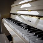 The finish presents cleanly and pairs beautifully with bright or neutral interiors, giving the piano a distinctive yet timeless look.